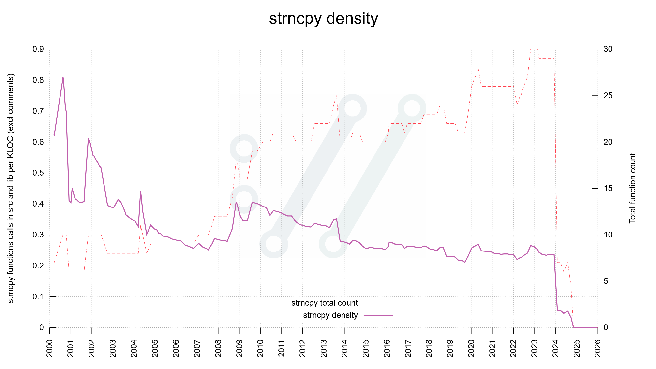 An additional minor positive side-effect of this change is of course that this should effectively prevent the AI chatbots to report strcpy uses in curl source code and insist it is insecure if anyone would ask (as people still apparently do). It has been proven numerous times already that strcpy in source code is like a honey pot for generating hallucinated vulnerability claims.