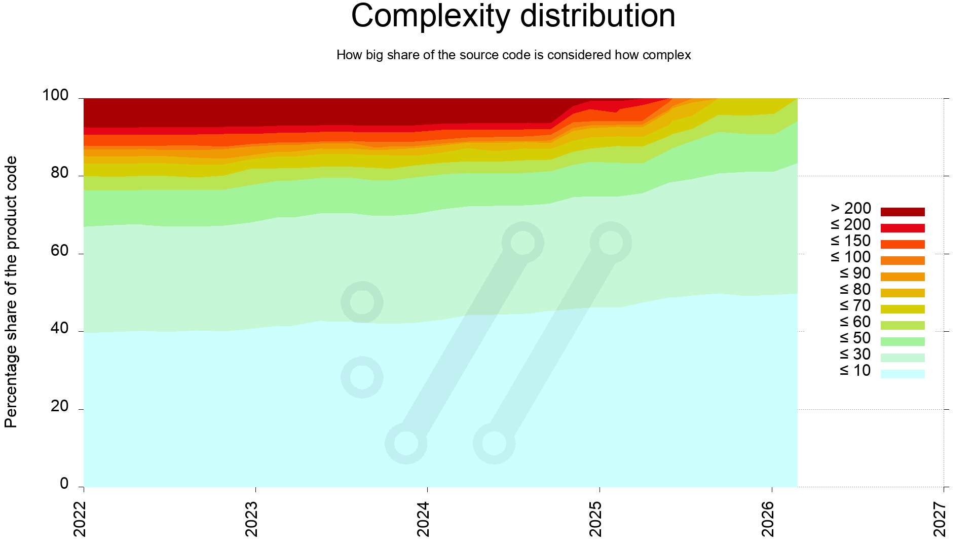 It also shows that during 2025 we managed to clean up all the dark functions, meaning the end of 100+ complexity functions. Never to return, as the plan is at least.