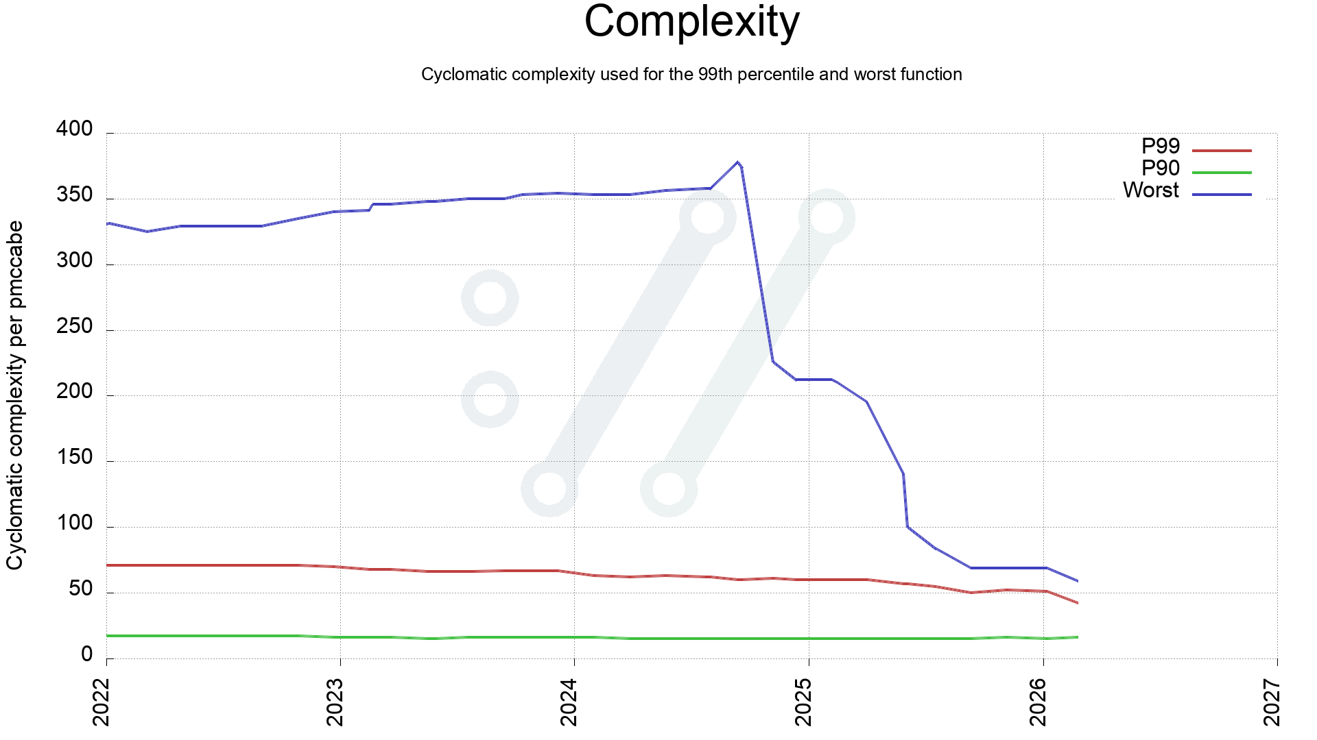 We don’t really know. We believe less complex code is generally good for security and code readability, but I it is probably still too early for us to be able to actually measure any particular positive outcome of this work (apart from fancy graphs). Also, there are many more ways to judge code than by this complexity score alone. Like having sensible APIs both internal and external and making sure that they are properly and correctly documented etc. The fact that they all interact together and they all keep changing, makes it really hard to isolate a single factor like complexity and say that changing this alone is what makes an impact.